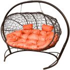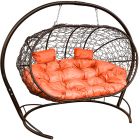 МГПДЛ-12-07 Подвесной диван ЛЕЖЕБОКА с ротангом коричневый, оранжевая подушка