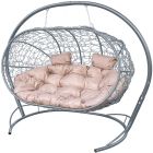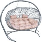 МГПДЛ-13-01 Подвесной диван ЛЕЖЕБОКА с ротангом серый, бежевая подушка