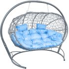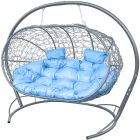 МГПДЛ-13-03 Подвесной диван ЛЕЖЕБОКА с ротангом серый, голубая подушка