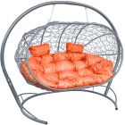 МГПДЛ-13-07 Подвесной диван ЛЕЖЕБОКА с ротангом серый, оранжевая подушка