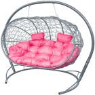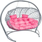 МГПДЛ-13-08 Подвесной диван ЛЕЖЕБОКА с ротангом серый, розовая подушка
