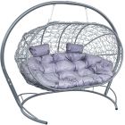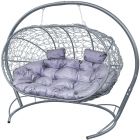МГПДЛ-13-09 Подвесной диван ЛЕЖЕБОКА с ротангом серый, серая подушка