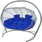 МГПДЛ-13-10 Подвесной диван ЛЕЖЕБОКА с ротангом серый, синяя подушка