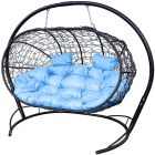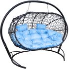 МГПДЛ-14-03 Подвесной диван ЛЕЖЕБОКА с ротангом чёрный, голубая подушка