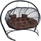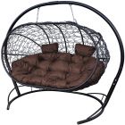 МГПДЛ-14-05 Подвесной диван ЛЕЖЕБОКА с ротангом чёрный, коричневая подушка