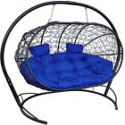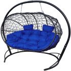 МГПДЛ-14-10 Подвесной диван ЛЕЖЕБОКА с ротангом чёрный, синяя подушка