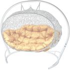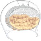 МГПДУ-11-01 Подвесной диван УЛЕЙ с ротангом белый, бежевая подушка