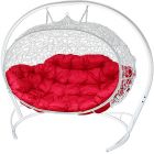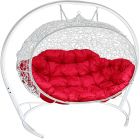 МГПДУ-11-06 Подвесной диван УЛЕЙ с ротангом белый, красная подушка