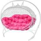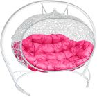 МГПДУ-11-08 Подвесной диван УЛЕЙ с ротангом белый, розовая подушка