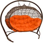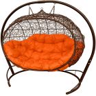 МГПДУ-12-07 Подвесной диван УЛЕЙ с ротангом коричневый, оранжевая подушка