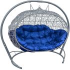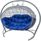 МГПДУ-13-10 Подвесной диван УЛЕЙ с ротангом серый, синяя подушка