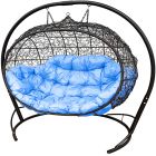 МГПДУ-14-03 Подвесной диван УЛЕЙ с ротангом чёрный, голубая подушка
