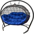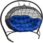 МГПДУ-14-10 Подвесной диван УЛЕЙ с ротангом чёрный, синяя подушка
