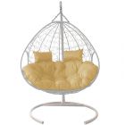 МГПК2-11-01 Подвесное кресло ДЛЯ ДВОИХ с ротангом белое, бежевая подушка