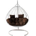 МГПК2-11-05 Подвесное кресло ДЛЯ ДВОИХ с ротангом белое, коричневая подушка
