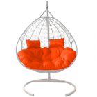 МГПК2-11-07 Подвесное кресло ДЛЯ ДВОИХ с ротангом белое, оранжевая подушка
