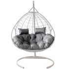 МГПК2-11-09 Подвесное кресло ДЛЯ ДВОИХ с ротангом белое, серая подушка
