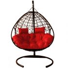 МГПК2-12-06 Подвесное кресло ДЛЯ ДВОИХ с ротангом коричневое, красная подушка