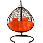 МГПК2-12-07 Подвесное кресло ДЛЯ ДВОИХ с ротангом коричневое, оранжевая подушка