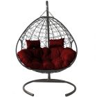 МГПК2-13-02 Подвесное кресло ДЛЯ ДВОИХ с ротангом серое, бордовая подушка