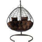 МГПК2-13-05 Подвесное кресло ДЛЯ ДВОИХ с ротангом серое, коричневая подушка