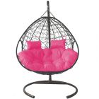МГПК2-13-08 Подвесное кресло ДЛЯ ДВОИХ с ротангом серое, розовая подушка
