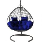 МГПК2-13-10 Подвесное кресло ДЛЯ ДВОИХ с ротангом серое, синяя подушка