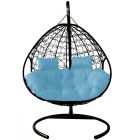 МГПК2-14-03 Подвесное кресло ДЛЯ ДВОИХ с ротангом чёрное, голубая подушка