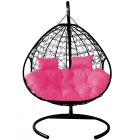 МГПК2-14-08 Подвесное кресло ДЛЯ ДВОИХ с ротангом чёрное, розовая подушка