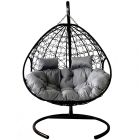 МГПК2-14-09 Подвесное кресло ДЛЯ ДВОИХ с ротангом чёрное, серая подушка