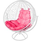 МГВКШР-11-08 Вращающееся кресло КРУГ с ротангом белое, розовая подушка