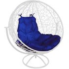 МГВКШР-11-10 Вращающееся кресло КРУГ с ротангом белое, синяя подушка