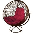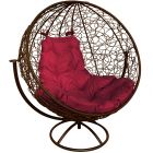 МГВКШР-12-02 Вращающееся кресло КРУГ с ротангом коричневое, бордовая подушка