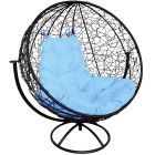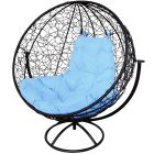 МГВКШР-14-03 Вращающееся кресло КРУГ с ротангом чёрное, голубая подушка