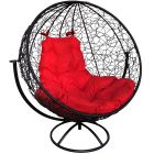 МГВКШР-14-06 Вращающееся кресло КРУГ с ротангом чёрное, красная подушка