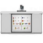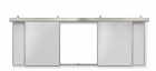 Слева и справа от интерактивной доски стационарно в стену крепятся две аудиторные доски. Еще две аудиторные доски крепятся в направляющий верхний профиль через систему кареток и имеют свободный ход. При необходимости преподаватель может закрыть интерактивную доску сдвинув их к центру либо раздвинуть их и работать на интерактивной доске.