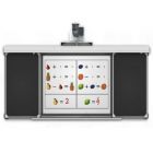 Слева и справа от интерактивной доски стационарно в стену крепятся две аудиторные доски. Еще две аудиторные доски крепятся в направляющий верхний профиль через систему кареток и имеют свободный ход. При необходимости преподаватель может закрыть интерактивную доску сдвинув их к центру либо раздвинуть их и работать на интерактивной доске.
