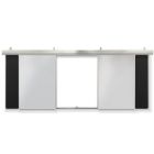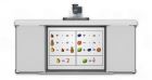 Слева и справа от интерактивной доски стационарно в стену крепятся две аудиторные доски. Еще две аудиторные доски крепятся в направляющий верхний профиль через систему кареток и имеют свободный ход. При необходимости преподаватель может закрыть интерактивную доску сдвинув их к центру либо раздвинуть их и работать на интерактивной доске.