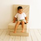 Уникальная конструкция изделия позволяет складывать его различными способами. Мат легко трансформируется в диванчик или кресло. В собранном виде мат компактен, изделие легко собирается и раскладывается.