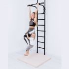 Материал устойчив к царапинам, грязи и влаге, что делает его долговечным в использовании и легким в уходе — достаточно протереть влажной салфеткой. Складной мат не занимает много места, его удобно хранить прямо за шведской стенкой.