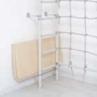 Материал устойчив к царапинам, грязи и влаге, что делает его долговечным в использовании и легким в уходе — достаточно протереть влажной салфеткой. Складной мат не занимает много места, его удобно хранить прямо за шведской стенкой.