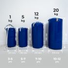 3. МФ-МК-01.67.07 (12кг) (от 7-10 лет) – Спортивный мешок изготовлен из прочного материала - армированного "Автотента". Наполнение - вспененный полиэтилен, речной песок, поролон. Размер мешка: 25x50 см. Длина цепи 16 см от верха мешка до карабина. Крепление для подвеса боксерского мешка входит в комплект