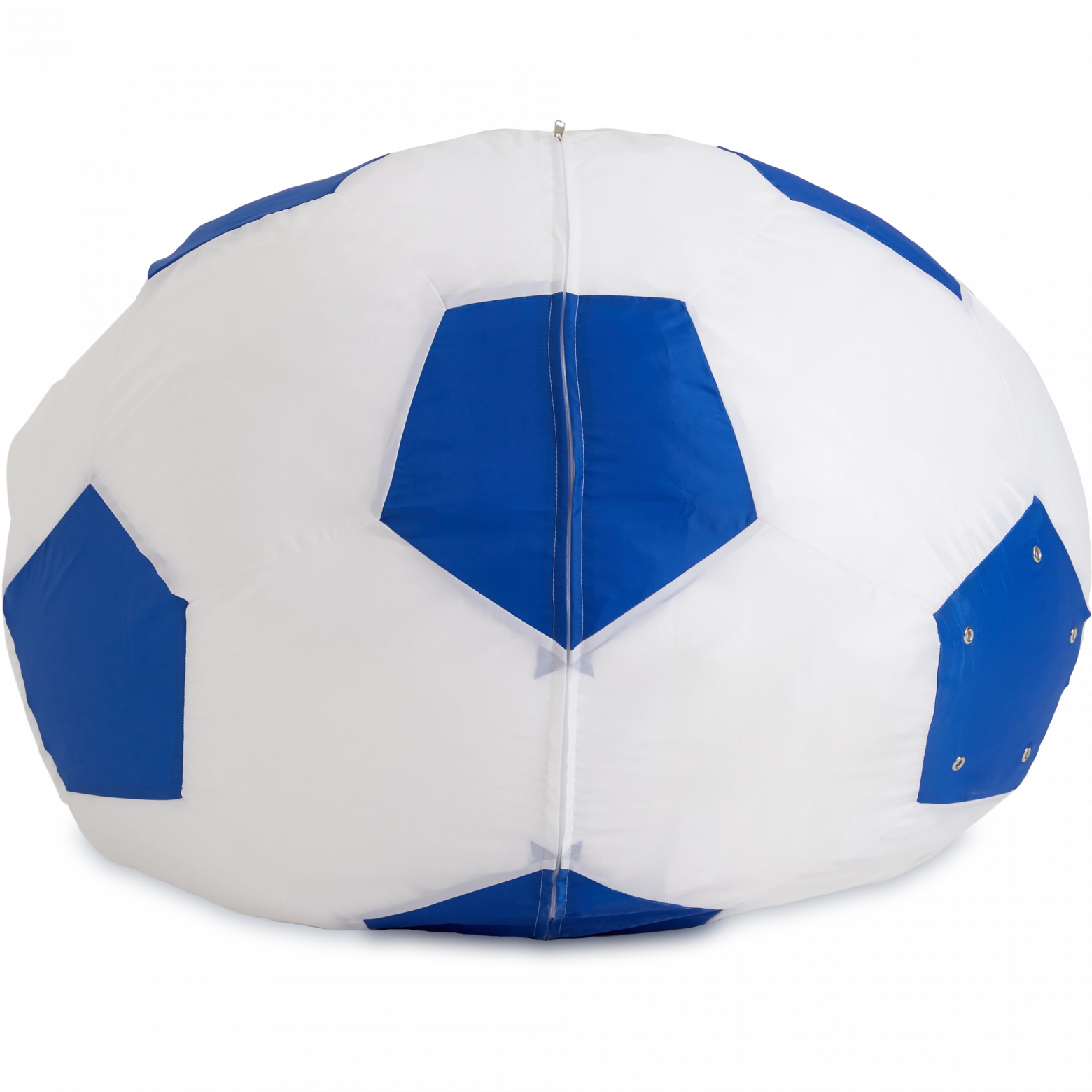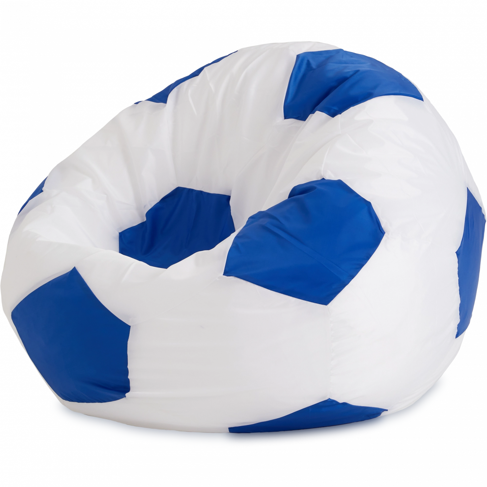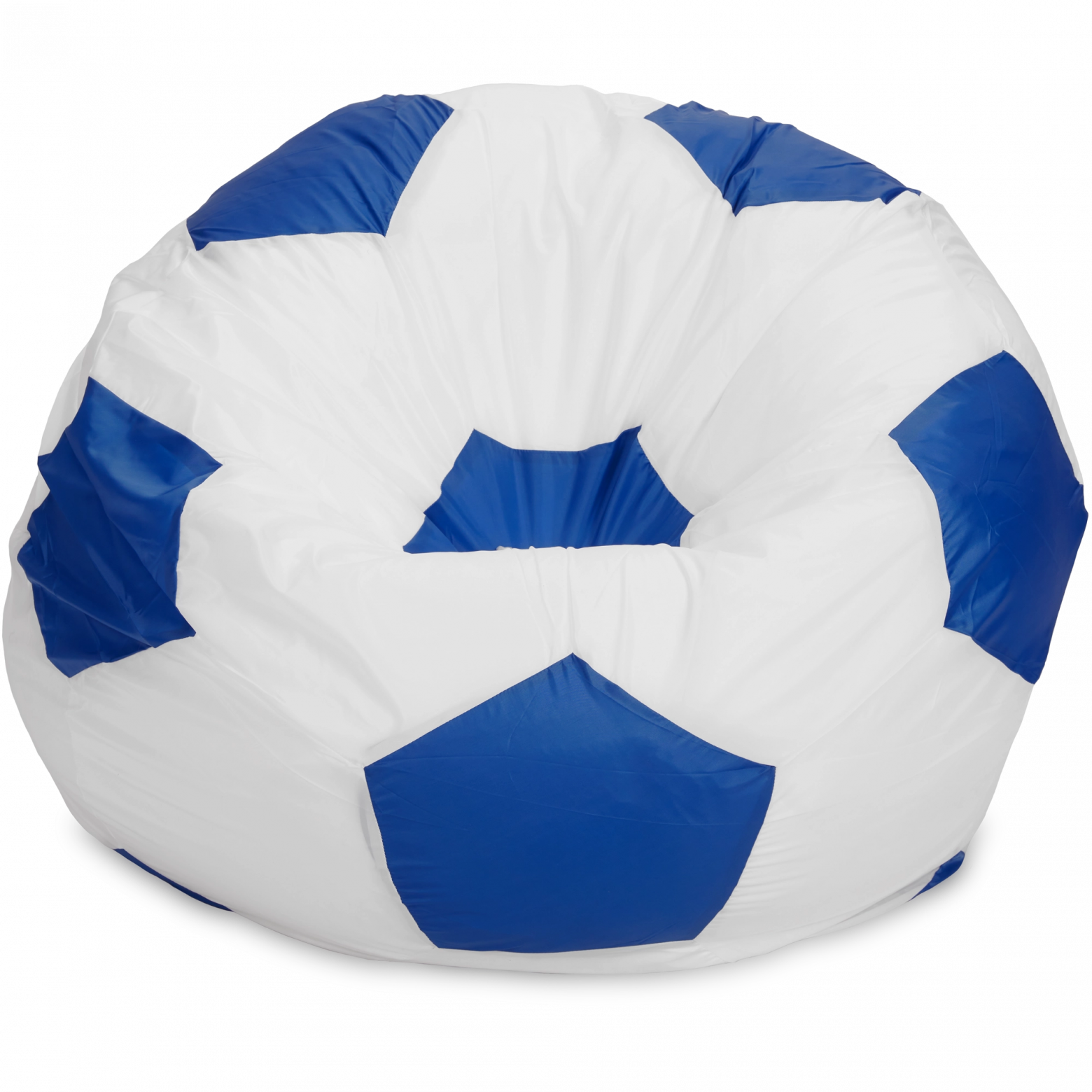 Размеры: XXL-мяч, 95x95x95 см.. Внешний чехол сшит из высококачественной ткани Оксфорд 210D PU с водоотталкивающей пропиткой. Внутренний чехол: Спанбонд 60D. Цвет: Белый и синий. Наполнитель: гипоаллергенный сертифицированный мебельный полистирол, с размером фракции 2-5 мм (премиум). Съемный внешний чехол, пригодный для автоматической стирки. Двойные швы, армированные нити, люверсы для отвода воздуха. Безопасен для детей и животных. Мягкий бескаркасный мешок (бин бэг) в форме мяча для эксплуатации в качестве кресла