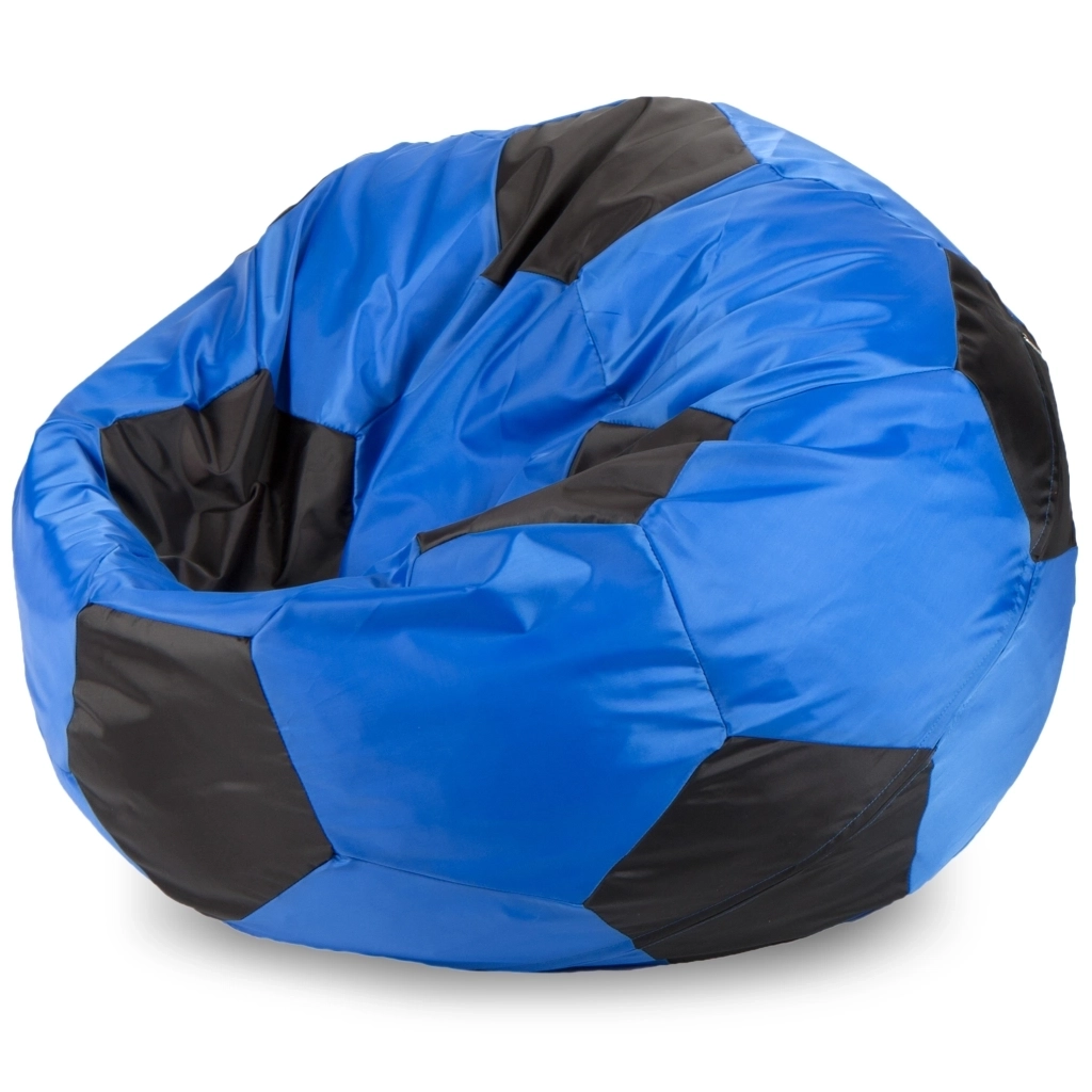 Размеры: XL-мяч, 70x70x70 см.. Внешний чехол сшит из высококачественной ткани Оксфорд 210D PU с водоотталкивающей пропиткой. Внутренний чехол: Спанбонд 60D. Цвет: Синий и черный. Наполнитель: гипоаллергенный сертифицированный мебельный полистирол, с размером фракции 2-5 мм (премиум). Съемный внешний чехол, пригодный для автоматической стирки. Двойные швы, армированные нити, люверсы для отвода воздуха. Безопасен для детей и животных. Мягкий бескаркасный мешок (бин бэг) в форме мяча для эксплуатации в качестве кресла