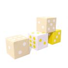 Мягкий модуль «Кости» - четыре цветных пуфа имитирующие игровые кости. Помогает научиться ребенку счету, а также может быть использован как кубики для строительства башен. Габаритные размеры одного кубика 300х300х300 мм, в комплекте 4 шт. Вес с упаковкой 8 кг.