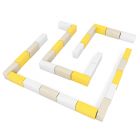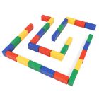 Лабиринт сбирается из 30 мягких геометрических фигур - прямоугольников, которые имеют легкий вес, благодаря чему безопасны для детей. Мягкие фигуры, входящие в состав комплекса, могут использоваться в качестве деталей конструктора, а сооружения пригодятся для увлекательных сюжетных игр.
