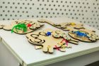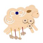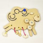 - Фигурки на веревочках в виде разных по размеру овечек – для развития логики, памяти, воображения. Ребята начинают различать понятие «большой-маленький» и учатся сопоставлять предметы по форме и размеру.