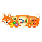 - «Лисичка»: счеты на вращающемся диске, погремушка с бисером, 3 цветные шестеренки, 2 тактильные дорожки с 4 цветными ползунками на каждой, спица с винтиками и гайками. Размеры панели: 90 х 32 см.