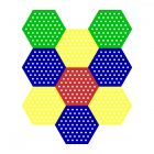 Сборные настенные панели – оптимальное решение для оформления стен ДОО, развивающих центров, сенсорных комнат и кабинетов психолога. Красочные элементы в форме шестиугольников станут не только украшением интерьера, но и местом надёжного крепления развивающего оборудования и полочек.
