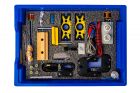 Весь набор (за исключением механической скамьи) укомплектован в пластиковую систему хранения, которая закрывается пластиковой прозрачной крышкой на защелках для обеспечения наблюдения за содержимым. Система хранения оснащена ложементом для обеспечения надежной фиксации и хранения всех элементов набора.